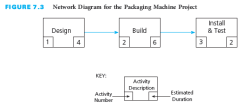 Each activity is represented by a box in the network diagram, and the description of the activity is written within the box, as shown in this figure.Activities consume time, and their description usually starts with a verb.